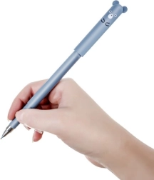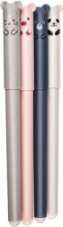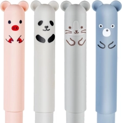 De set bevat 4 stijlvolle uitwisbare pennen in de kleuren grijs, wit, roze en blauw met speelse dierenmotieven (varkentje, panda, muis, beertje). Dankzij de thermogevoelige inkt corrigeer je kleine foutjes eenvoudig – gebruik de wisgum aan het uiteinde en schrijf opnieuw, zonder ontsierende krassen.