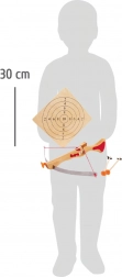 Deze robuuste kinderkruisboog van natuurlijk hout met rode accenten biedt een realistische schietbeleving en houdt tegelijk rekening met veiligheid. De pijlen met zuignap hechten betrouwbaar aan gladde oppervlakken en doelwitten, waardoor het trainen van precisie leuk en veilig is.