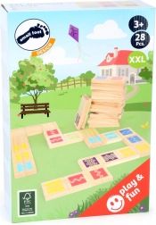 Geniet van extra veel plezier met dit XXL domino van hoogwaardig FSC-hout. De set met 28 stenen biedt spel op kleur- én patroonovereenkomst, en stimuleert fijne motoriek, logisch denken en kleurherkenning. De stukken zijn groot, stevig en veilig voor kinderen vanaf 3 jaar. Ideaal voor binnen en buiten. FSC-certificering, 28 extra grote stenen, kleuren en gearceerde patronen, geschikt voor de allerkleinsten.