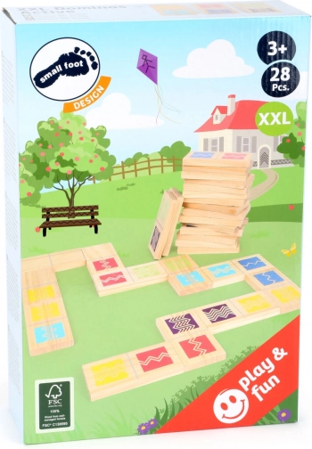 Domino XXL Active van small foot is een tijdloos gezelschapsspel in maxi-formaat dat zowel kinderen als volwassenen vermaakt. Elke steen is gemaakt van 100% FSC-gecertificeerd hout en versierd met opvallende kleuren en gearceerde patronen. Je kunt spelen op kleur of op arcering – zo trainen kinderen visuele differentiatie, concentratie en strategisch denken.