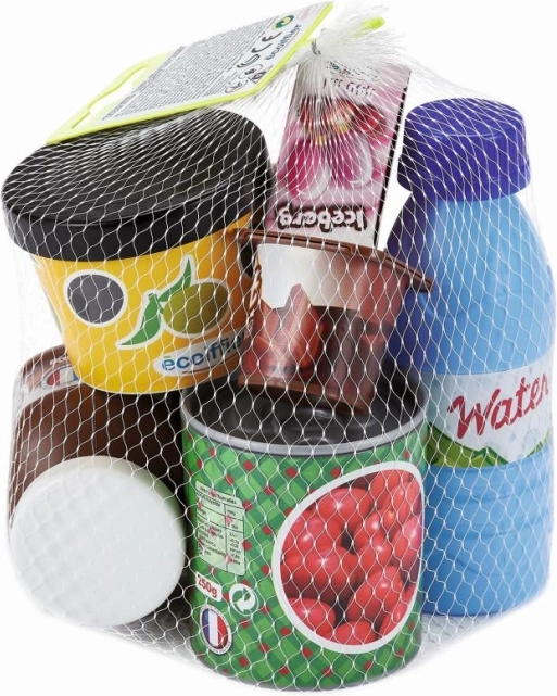 Deze set biedt authentieke voedselimitaties zoals yoghurtjes, een fles water, conservenblikjes met groenten en chocoladeroom. Kinderen zullen uren plezier beleven aan het spelen van winkel of het bereiden van maaltijden.