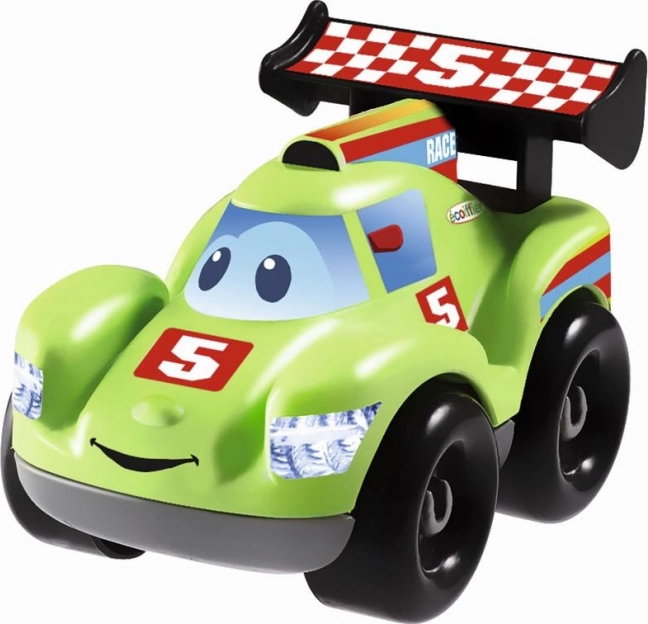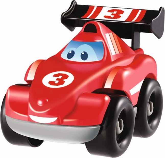 Drie modellen raceauto’s met verwisselbare carrosserie. Elk model raceauto met grappig gezicht is zonder scherpe randen en ligt gemakkelijk in de hand. Ideaal voor kleine kinderhandjes. Productafmetingen (LxBxH): 10 x 6,5 x 6,5 cm.