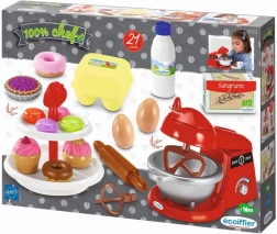 Ontdek de creatieve wereld van het bakken met deze kinderset, die een keukenrobot met mechanische functie, 2 mengopzetstukken, een mengkom en een standaard met gebakjes bevat. Inclusief eieren, deegroller en diverse desserts zoals macarons, taartjes, muffins en donuts. In totaal 21 accessoires voor uren speelplezier en fantasie.