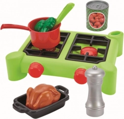 Set kookgerei met potten is ideaal voor elke jonge kok. Deze set met twee kookplaten bevat alles wat je nodig hebt voor een leuke en realistische keukenervaring.