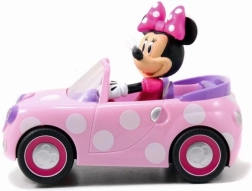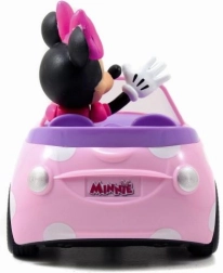 RC autootje met Disney Minnie, 1-kanaals, frequentie 2,4 GHz, rijdt recht vooruit en achteruit. In roze kleur. Lengte 19 cm.