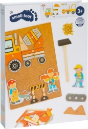 Deze creatieve hamerset op een kurkbord is een geweldige keuze voor kleine bouwers en vervoersliefhebbers. Kinderen kunnen van houten vormen werkers, een betonmixer, een kraan of auto’s maken en ze met punaises veilig aan het kurkbord bevestigen. De praktische opbergbox zorgt ervoor dat er geen enkel onderdeel kwijt raakt.