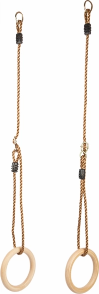 De gymnastiek ringen hebben gemakkelijk verstelbare touwen, die aanpassing van hun lengte naar behoefte mogelijk maken.