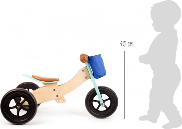 Stijlvolle en veilige houten loopfiets voor kinderen, die meegroeit. Biedt de mogelijkheid om om te bouwen van een driewieler naar een tweewieler, wat de ontwikkeling van motorische vaardigheden en coördinatie bevordert.