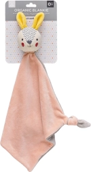 Extra zacht knuffeldoekje met het hoofd van een lachend konijntje maakt elke baby blij. Het is gemaakt van 100% biologisch katoen, geverfd met ecologische verven en dankzij contrasterende patronen ondersteunt het de sensorische ontwikkeling. Een praktisch knoopje om op te bijten en het ideale formaat maken van dit knuffeldoekje het perfecte cadeau voor pasgeborenen.
