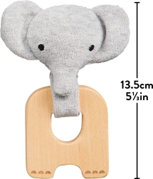 Petit Collage Bijtspeeltje olifant biedt kinderen een veilige en milieuvriendelijke manier om te vermaken en kalmeren. Het combineert organisch katoen en FSC-gecertificeerd hout voor het garanderen van veiligheid en comfort.