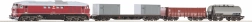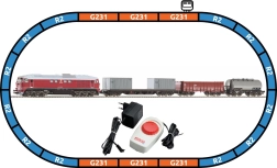 - Locomotief BR 130 ČSD (1×), goederenwagens (3×), boograils R2 met bedding 55412 (12×), rechte rails G231 met bedding 55401 (5×), rechte G231 met voedingsaansluiting 55406 (1×), beddingdeel voor klem 55447 (1×), voedingsklem 55270 (1×), analoge handregelaar met voeding 55003 (1×)