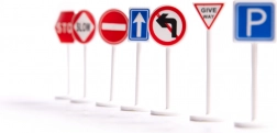 1 x vliegtuig, 3 x autootje, 1 x set verkeersborden