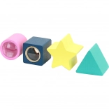 Kinderen kunnen verschillende vormen in de bijbehorende openingen plaatsen, wat hun fijne motoriek en ruimtelijk inzicht ontwikkelt.