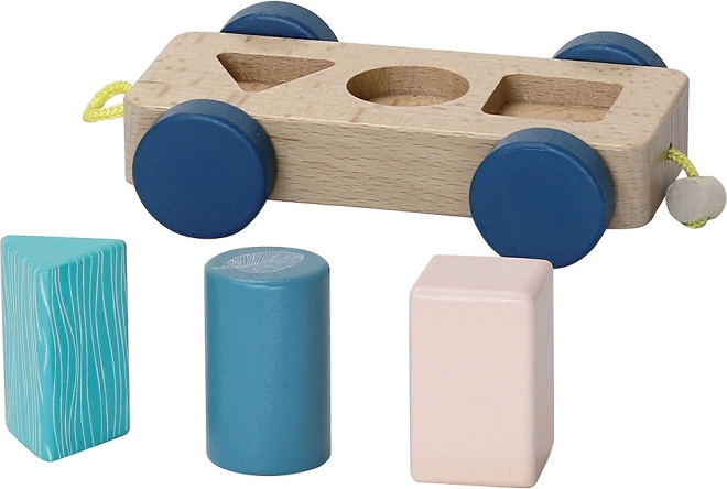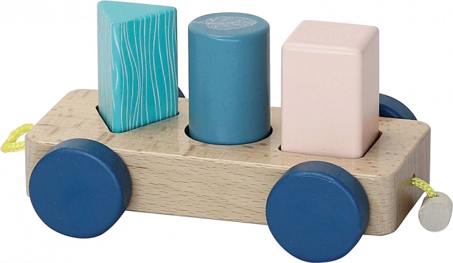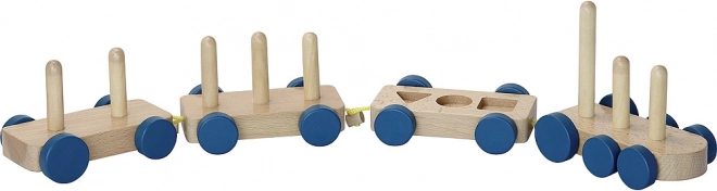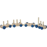 Textiele lusjes en houten kralen zorgen voor een veilige verbinding tussen de delen van de trein.