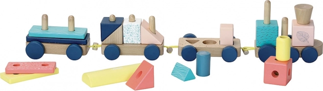 De kleurrijke houten trein van het merk Vilac is een ideale aanvulling op elk kinderspel. Dit multifunctionele speelgoed helpt kinderen hun vaardigheden en verbeelding te ontwikkelen dankzij de diverse kleurrijke blokken. De trein kan rijden en de locomotief en wagonnetjes zijn verbonden met textiele lusjes met houten kralen, wat zorgt voor veiligheid en eenvoudig gebruik.