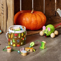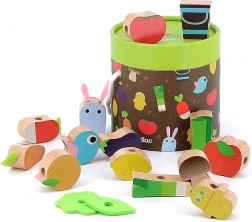 Dit houten rijgspel met tuinthema biedt kinderen een kleurrijke variatie aan vormen en kleuren waar ze dol op zullen zijn. Dankzij de veilige en glad afgewerkte onderdelen kunnen kleine ontdekkers oefenen met rijgen, sorteren en het benoemen van voorwerpen van de boerderij. De compacte verpakking is ideaal voor onderweg en voor netjes spelen thuis.