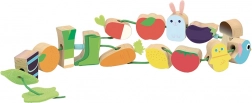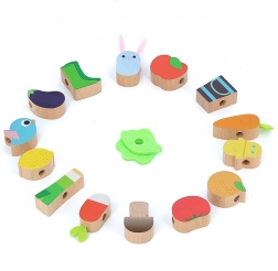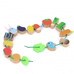 Het speelgoed is gemaakt van kwalitatief hout en beschilderd met kindveilige, niet-giftige verf. De textielveter met veiligheidssluitingen zorgt voor eenvoudig en veilig rijgen, zodat kinderen zelfstandig of samen met ouders kunnen spelen. Het rijgspel ondersteunt de ontwikkeling van de fijne motoriek, logisch denken en visuele perceptie.