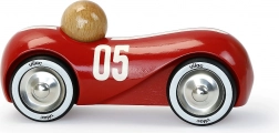 Stijlvolle rode raceauto van gelakt hout met metalen, met rubber beklede wielen die zowel kleine racers als designliefhebbers zal bekoren. Geschikt om mee te spelen én als decoratie. Gemaakt in Frankrijk, uitmuntend door hoogwaardige afwerking, duurzame wielen en een tijdloos vintage design.