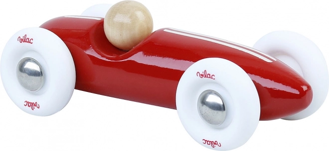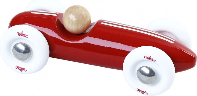 Stijlvolle rode mini-raceauto van hoogwaardig gelakt hout van het merk VILAC, perfect voor zowel kleine als grote fans van snelle wielen. Voorzien van stille witte rubberen wielen voor soepel rijden, precisie Frans vakmanschap en een tijdloos vintage design dat creatief spel stimuleert en prachtig staat in de kinderkamer.