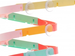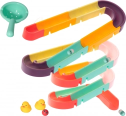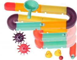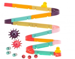 Elke dag kun je een nieuwe racebaan maken waar kinderen niet alleen leren creëren, maar ook kunnen racen in vrolijke wedstrijden met kleurrijke bonen en balletjes. De slide is uitgerust met zuignappen voor gemakkelijke bevestiging op tegels of het bad, wat stabiliteit tijdens het spel verzekert.