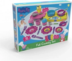 Kunststof serviesset met het motief van VARKENTJE PEPPA biedt kinderen een leuk kookrollenspel. In de verpakking vind je 35 onderdelen, waaronder een kookplaat, pannen, borden, kopjes en bestek. Licht, duurzaam en gemakkelijk schoon te maken ontwerp.