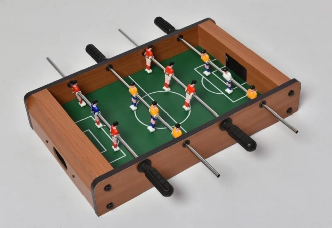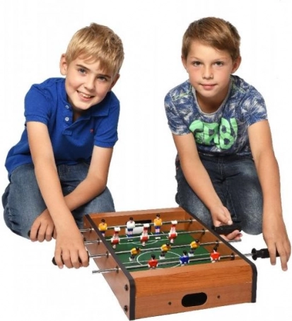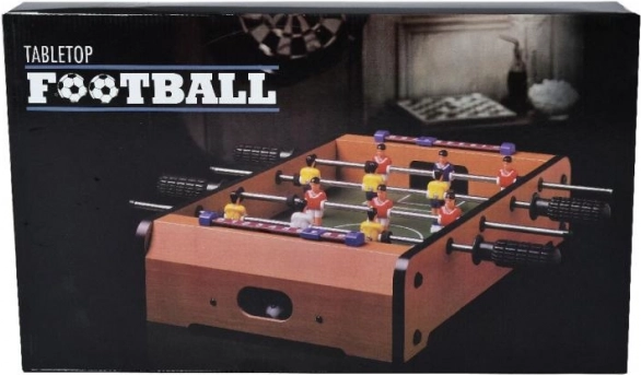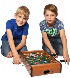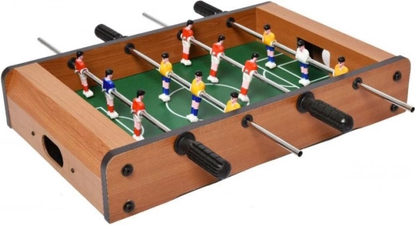 Deze kleinere tafelvoetbal is de ideale keuze voor alle voetballiefhebbers die thuis plezier willen hebben. Het is geconstrueerd van gekleurd en gelakt hout, wat zijn lange levensduur garandeert. Elk team heeft 6 spelers gepositioneerd op twee stangen die eenvoudig bediening en simulatie van een echte voetbalwedstrijd mogelijk maken.