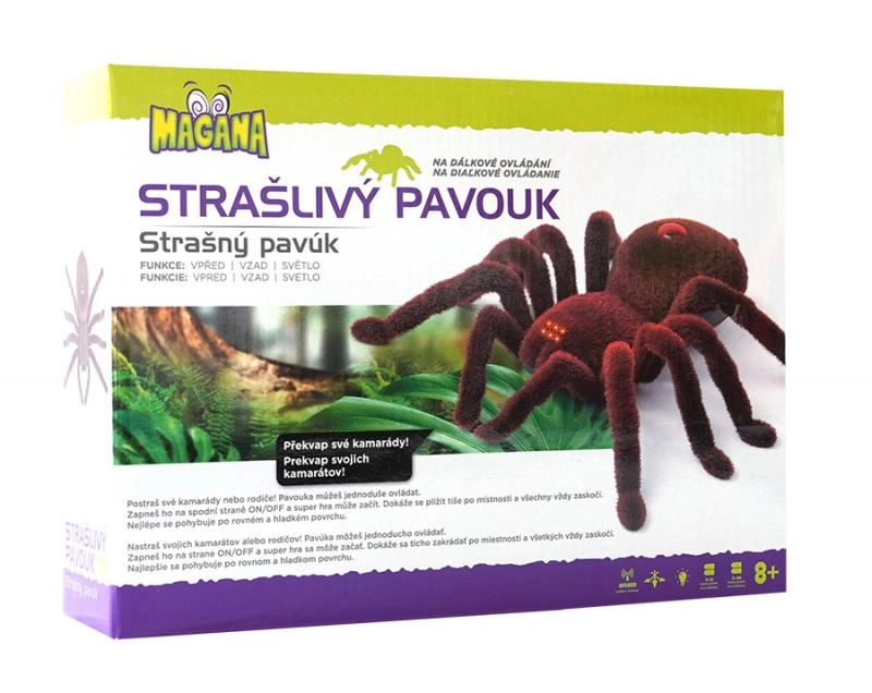 Ben je niet bang voor spinnen? De MAGANA enge tarantula-spin zal je van gedachten doen veranderen. Deze harige, realistisch bewegende spin met afstandsbediening en lichteffecten in de ogen en het achterlijf is ideaal voor plezier, grapjes en spannend spel.