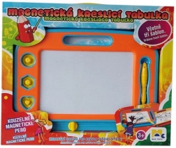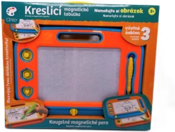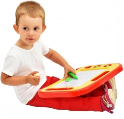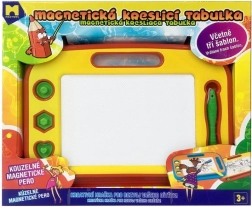Het magnetische tekenbord is de ideale keuze voor kleine kunstenaars, zowel thuis als onderweg. Dankzij de magische magnetische pen en drie stempels genieten kinderen van uren tekenplezier zonder papier of krijtjes. Met één schuif van de wisbalk verdwijnt de tekening en is het oppervlak klaar voor een nieuw kunstwerk.