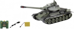 Een leuke RC-tank in het groen met besturing op 2,4 GHz biedt realistische effecten en actievolle duels. Dankzij de besturing met joysticks rijdt hij in alle richtingen, biedt infragevechten voor maximaal twee spelers, licht- en geluidseffecten bij het schot en draaien van het kanon rechtstreeks vanaf de controller.