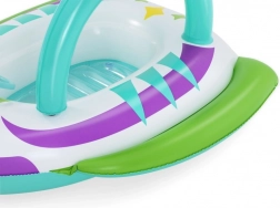 De leuke opblaasbare boot BESTWAY Space Splash voor kinderen vanaf 3 jaar biedt veilig speelplezier in het water, een afneembaar zonnescherm met UV‑bescherming, een opblaasbare bodem met peek‑a‑boo‑raampje en een stuur met toeter. Het stijlvolle “ruimte”-design en de comfortabele handgrepen zorgen voor uren plezier in het zwembad, bij het meer en aan zee.