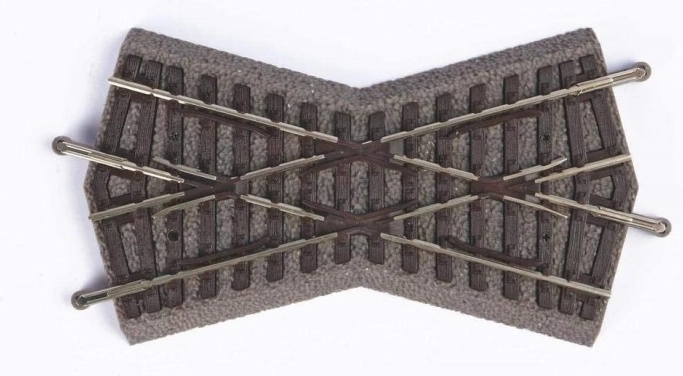 Kruising met gedetailleerde weergave van houten dwarsliggers op een ballastbed, in natuurgetrouwe kleuren. Combineert twee rechte rails G119 die een hoek van 30° vormen. Belangrijkste kenmerken: 30° lengte 119 mm inclusief ballastbed Documentatie: Brochure voor PIKO H0 A-Gleis (DE, EN)