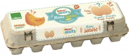 Geluiden memory in de vorm van eieren in een klassieke kartonnen verpakking is ideaal voor het ontwikkelen van sensorische vaardigheden bij kinderen. Het speeltje bevordert het geheugen doordat kinderen paren van eieren met hetzelfde geluid zoeken.