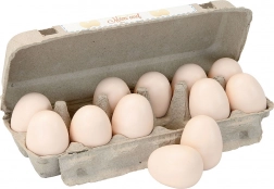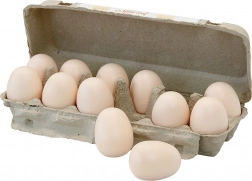 - Bevat 12 houten eieren