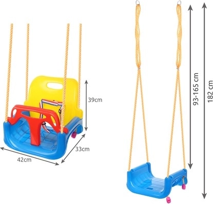 Dankzij de verwijderbare voor- en achterbalken is de schommel geschikt voor verschillende leeftijdsgroepen en zorgt het voor veiligheid tijdens het spelen.