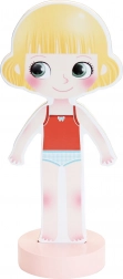 De stijlvolle ontwerpster Mia wacht tot jij haar de mooiste outfit geeft. Met de robuuste houten figuur op een stabiele standaard en magnetische onderdelen kunnen kinderen eenvoudig jurken, schoenen en accessoires combineren en zo eindeloos veel modieuze sets creëren.