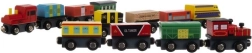 De set bevat 3 locomotieven en 9 wagons in verschillende kleuren, wat voor gevarieerd amusement zorgt.
