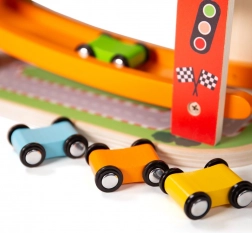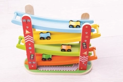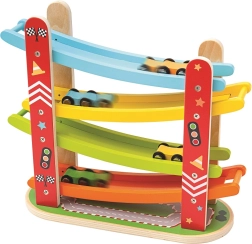 Bevat vier gekleurde autootjes die van de hellingen afgaan, elk met een unieke kleurige manier om kinderen te vermaken en onderwijzen. Bevordert motoriek en hand-oogcoördinatie door middel van speelse activiteiten.