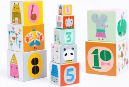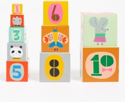 De stapeltoren van blokken VILAC x Suzy Ultman combineert plezier en leren. Kinderen kunnen hoge torens bouwen, de blokken sorteren op grootte of ze verkennen dankzij de vrolijke dierenmotieven en cijfers van 1 tot 10. De illustraties van Suzy Ultman zijn speels, kleurrijk en prikkelen de verbeelding.