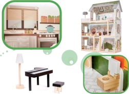 Spelen met het poppenhuis ontwikkelt de fantasie, fijne motoriek en sociale vaardigheden van het kind.