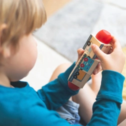 De stevige houten constructie met gladde randen is veilig voor kleine kinderen en past perfect in kinderhandjes en in een rugzak voor onderweg.