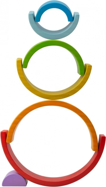 De kleine houten regenboog BIGJIGS BABY is de ideale eerste bouwset voor kinderen vanaf 12 maanden. Zeven stevige bogen in heldere kleuren kunnen gestapeld, gelaagd, op grootte gerangschikt of gebruikt worden om bruggen, tunnels en originele constructies te maken. Kinderen maken op een natuurlijke manier kennis met kleuren, verhoudingen en balans.