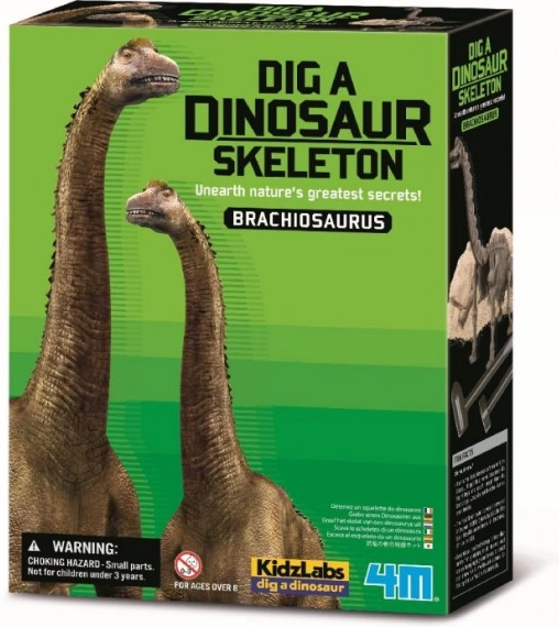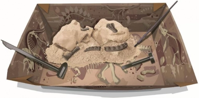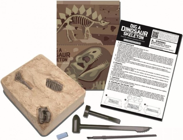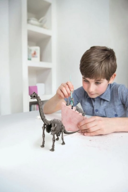 Set om een dinosaurusbot te ontgraven en in elkaar te zetten, gegoten in gips. Bevat de benodigde gereedschappen.