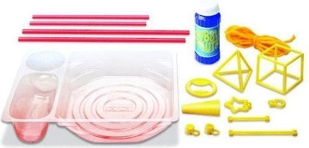 Set voor het maken van gigantische bellen. Bevat een handleiding voor het maken van je eigen oplossing en hulpmiddelen voor verschillende trucs met bellen.