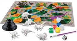 Kleur 6 dinosaurussen en een vulkaan in, en je kunt een avontuurlijk spel spelen en de vulkaan laten uitbarsten.