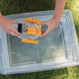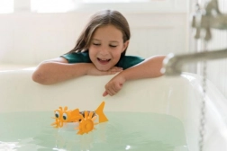 De lichte behuizing en zijschoepen zorgen voor vloeiende beweging over het wateroppervlak – in bad, een teil of een kinderzwembadje.