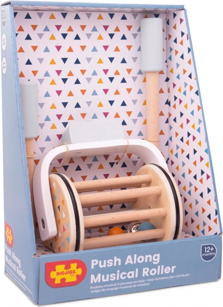 De prachtig ontworpen muzikale rol, gemaakt van 100% FSC® hout, ondersteunt niet alleen de motoriek, maar ook de zintuiglijke vaardigheden van uw kinderen. Door de beweging en het geluid van het belletje dat tussen de houten latten schommelt, ontwikkelt het kind zijn gehoorvaardigheden. Het speelgoed bestaat uit een combinatie van natuurlijk en gekleurd hout, waarbij de kleuren de visuele waarneming stimuleren.