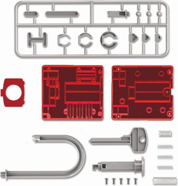 Er zit een doe-het-zelf kit bij zodat kinderen het slot kunnen monteren en de verschillende onderdelen kunnen begrijpen.