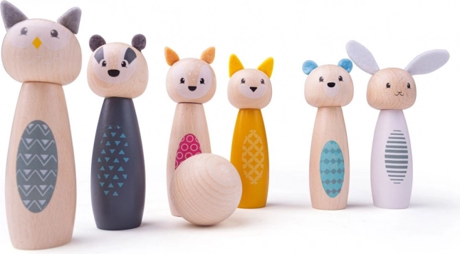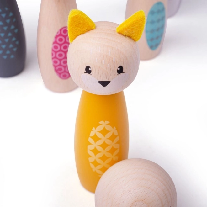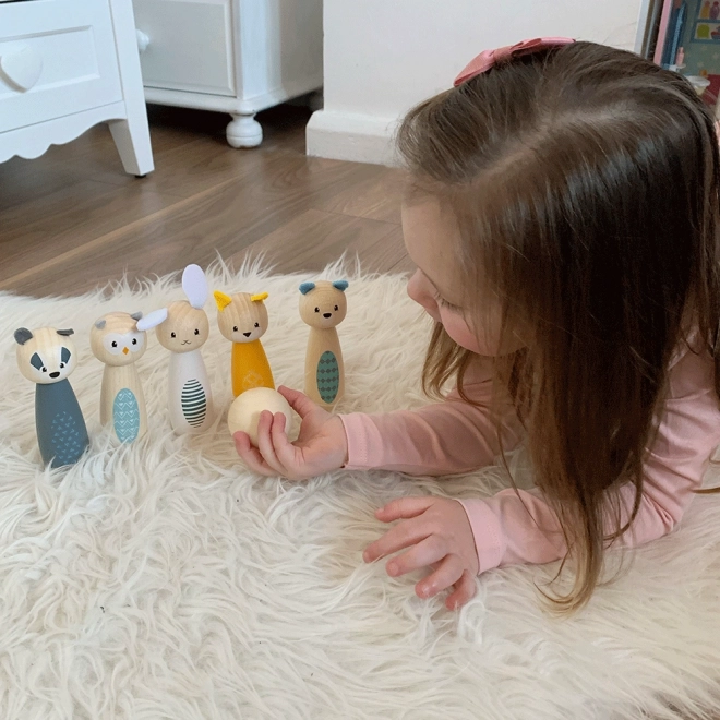 Maak kinderen blij met een stijlvolle kegelsset met schattige dieren – uil, das, hert, kat, beer en konijn. De kleurrijke figuren van hoogwaardig FSC-gecertificeerd hout zijn glad, prettig om aan te raken en bestand tegen dagelijks spelen. De set is geschikt voor spelen thuis op tapijt of op een gladde vloer.