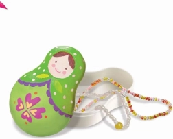 Ontdek het plezier van creëren met deze creatieve set waarmee je 6 schattige matroesjka’s kunt beschilderen. De afgewerkte poppetjes dienen als originele doosjes voor kleine spulletjes en tegelijk als decoratie voor de kinderkamer.