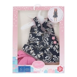 De kleding is ontworpen voor poppen van 44 cm, in het bijzonder voor de Starlette-serie. De combinatie van het donkerblauwe jurkje met bloemmotief en het roze hoedje creëert een betoverende outfit die comfortabel en zeer fotogeniek is. Nauwkeurige stiksels en oog voor detail onderstrepen de lange traditie van kwaliteit van het merk PETITCOLLIN.